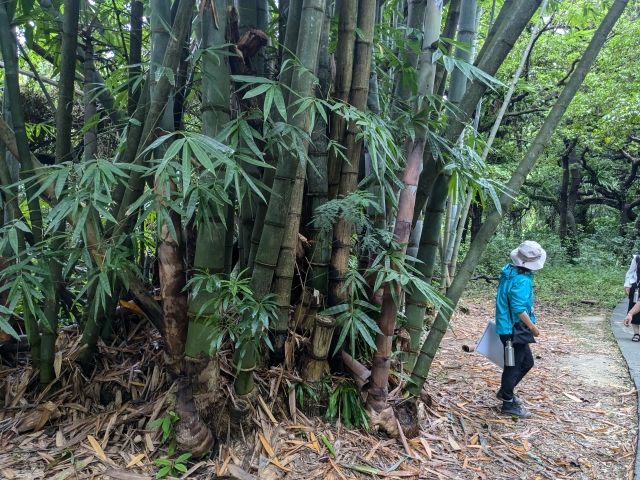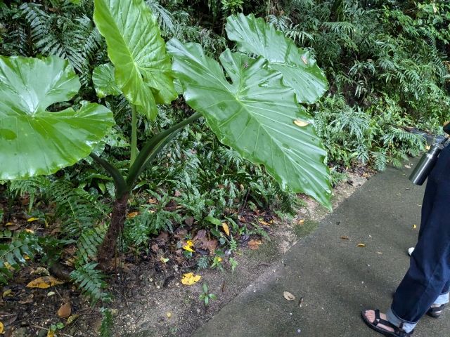 ガイドさんとともに進んで行くと、最初に目に入るのは大きな葉っぱ。クワズイモという植物で、トトロごっこで人気。