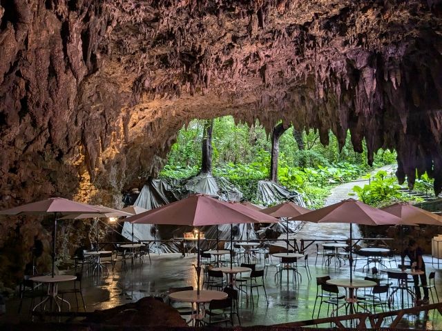 受付カウンターの隣に広がるのは巨大な洞窟空間!ここはケイブカフェというスペースで、コンサートやパーティーが開催されることもあるそうです。
