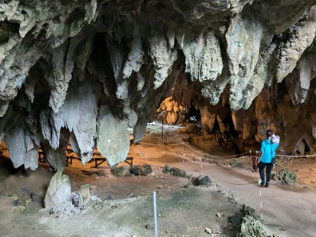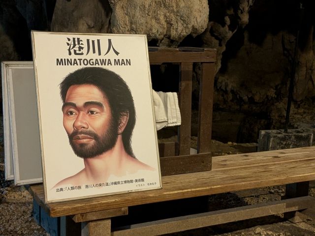 ラストは武芸洞という洞窟に。ここで、解説があるのが港川人について。縄文時代よりさらに昔である旧石器時代に暮らしていた人類で、谷の近くの港川フィッシャー遺跡から骨が見つかっております。