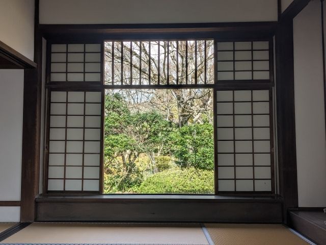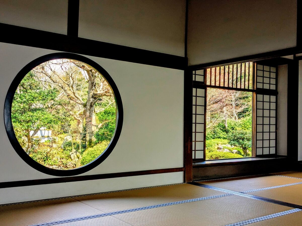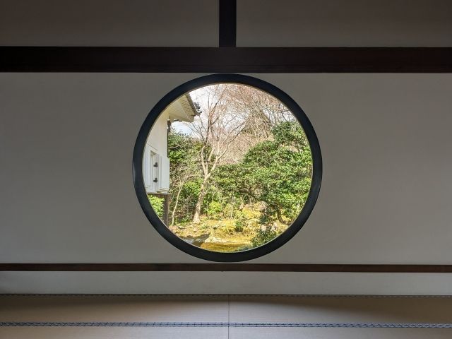 丸窓は「悟りの窓」と名付けられており、「禅と円通」の⼼、大宇宙を表しているそう。ただの丸い窓ですが、向かい合って座っていると、心が落ち着いてきます。