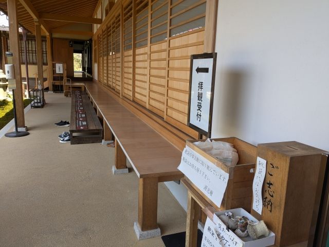 拝観は靴を脱いで行います。袋代はお気持ちを、そして使用した袋は持ち帰りを推奨されておりました。