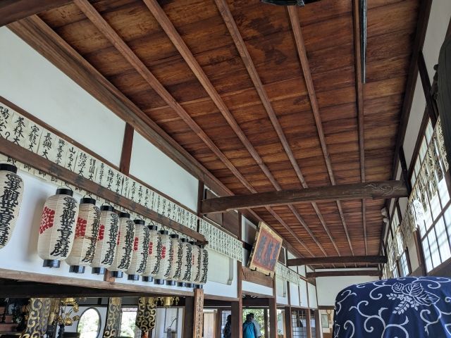 本堂は元禄7年(1694年)に再建されたもの。本尊は釈迦牟尼仏、脇侍に迦葉尊者・阿難尊者を祀っています。悟りの窓と迷いの窓や血天井があるのはこの本堂の内部。拝観料は400円です。