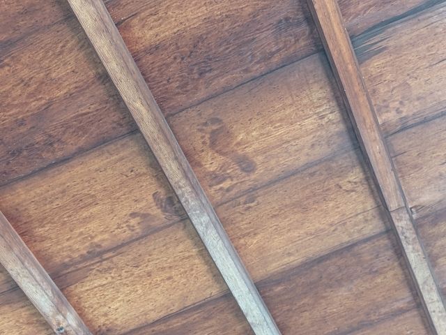 源光庵に来たら見逃せないのが天井板。よく見ると足跡があるように見えます。床板でもない天井板に、なぜ足跡があるのでしょうか。