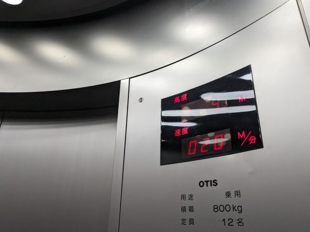 エレベーター内には、高度と速度を示すデジタルパネルもあります。2本のポールのうち片方がこのエレベーターですが、もう片方はなんと螺旋階段。全部で560段であり、消防隊員の訓練に使われたこともあるそう。