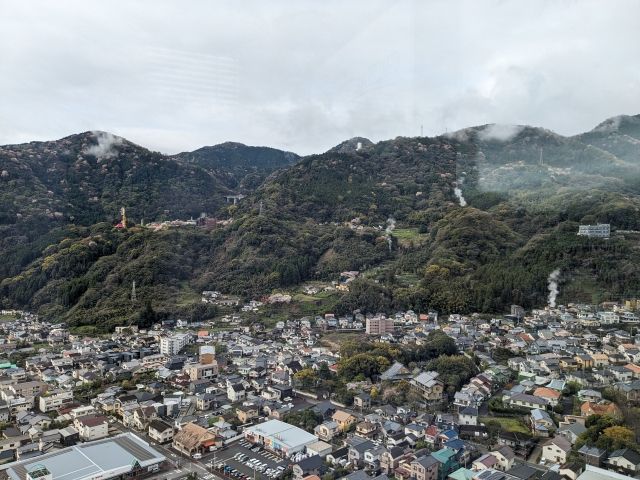 南側は山の中腹に広がる遊園地「ラクテンチ」。こちらも随所に湯けむりが上がっており、別府は本当にあちこちから温泉が湧いていることを実感します。