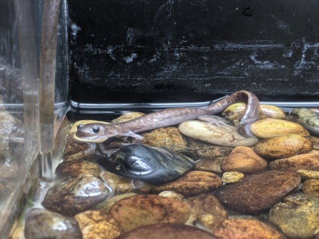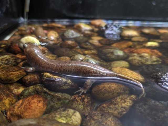 サカナばかりに目が行ってしまいますが、実はサンショウウオもかなり充実しております。山陰地方の名を冠したサンインサンショウウオは、体長10cm程度の小型のサンショウウオです。