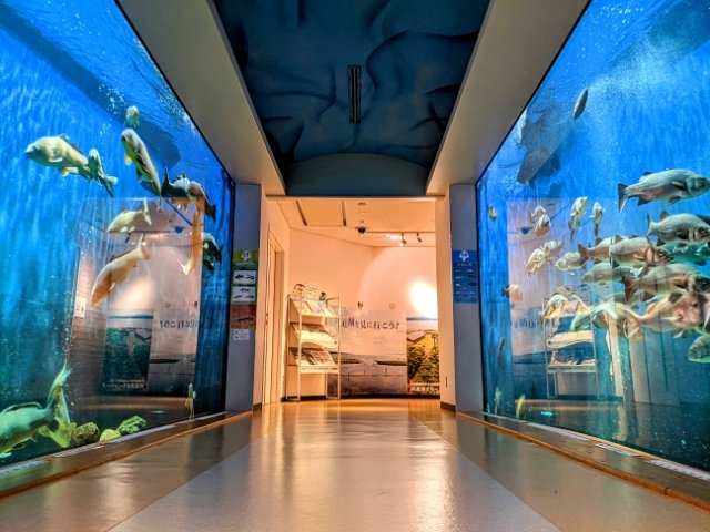 宍道湖は全国7位、中海は全国5位の面積を誇る、日本を代表する湖。館内の水槽では、そんな大きな湖に暮らす生き物がたくさん。