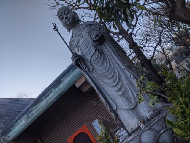 高さ3.5メートルの大きなお地蔵様。とても穏やかなお顔で本堂のそばに立っています。名前の通り、不幸から再起を計る際にその願いを聞いてくださるそう。