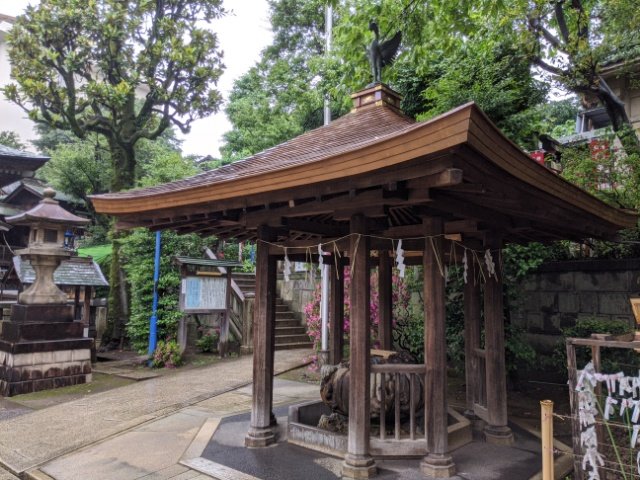 五條天神社の手水舎は、よく見ると頭頂部に鳳凰が乗っかっています。
