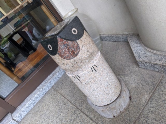 天満宮・天神には「梅の木」や「牛」などいくつかの特徴があります。そのうちの1つ「鷽(うそ)」を境内にて見つけました。菅原道真は鷽の大群に助けられたという伝説が残っており、各地の天満宮・天神では、木彫りの鷽を授与していたり、「鷽替え」という神事を行ったりしています。