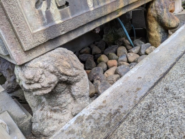 一方、花園稲荷の手水は一見すると普通ですが、よく見ると何かが水盤を支えています。