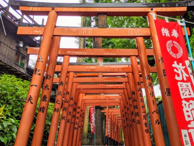 東京で最も古い神社の一社である五條天神社。名前の通り天神信仰ともかかわりのある神社です。すぐ隣には、いくつもの鳥居が続く花園稲荷と、その元宮である穴稲荷も存在しています。