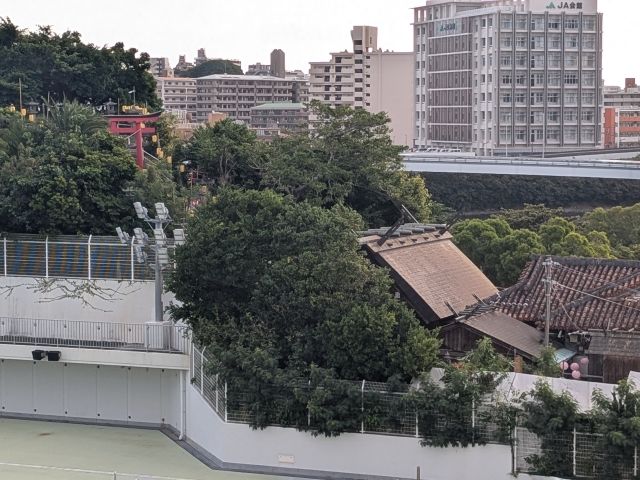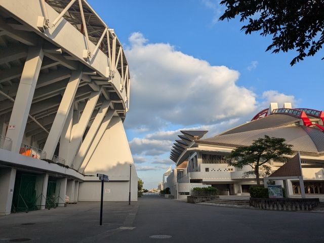 現在は橋や埋め立てにより陸続きになり、奥武山公園として整備されています。ここは沖縄における「スポーツの聖地」としても知られています。3万人収容可能な野球場「沖縄セルラースタジアム那覇」をはじめ、武道館・弓道場・プール・テニスコートを備えており、多くの人でにぎわう場所。
