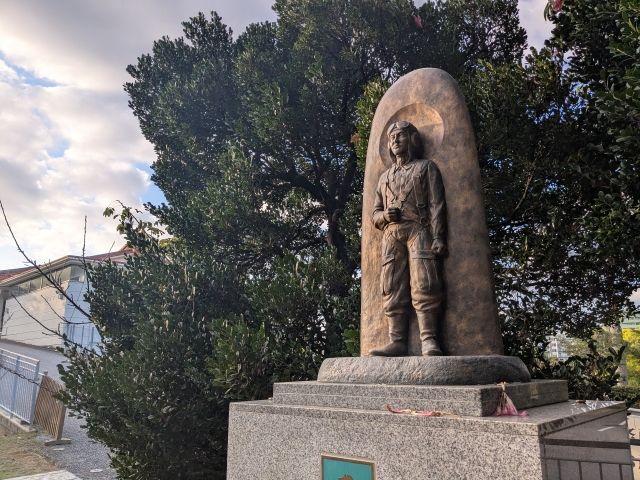兵隊の像は、「あゝ特攻」勇士之像。特攻にて散った戦没者を顕彰するために建立されたものです。
