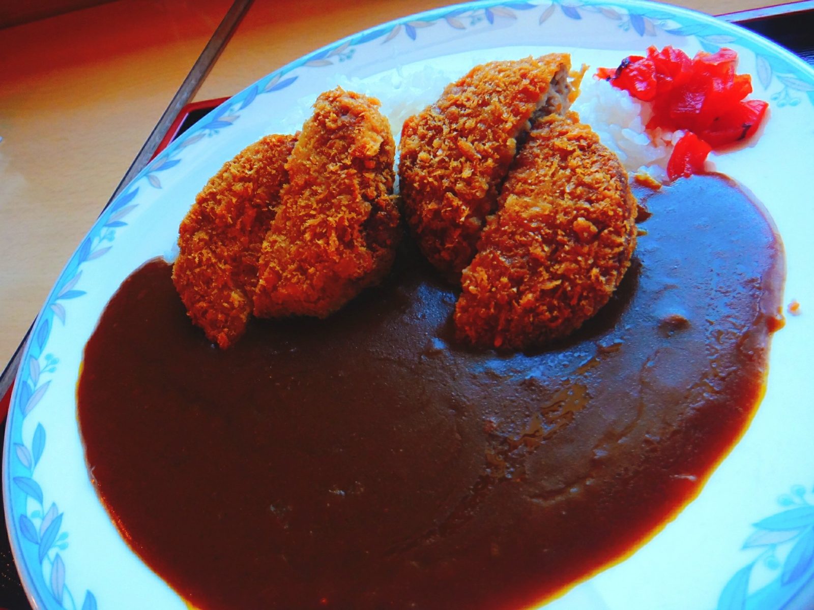 ここで食べることができるジビエはイノシシ。カレーの上に、イノシシのメンチカツが乗っています。メンチカツなら臭みもなくとっても食べやすい。