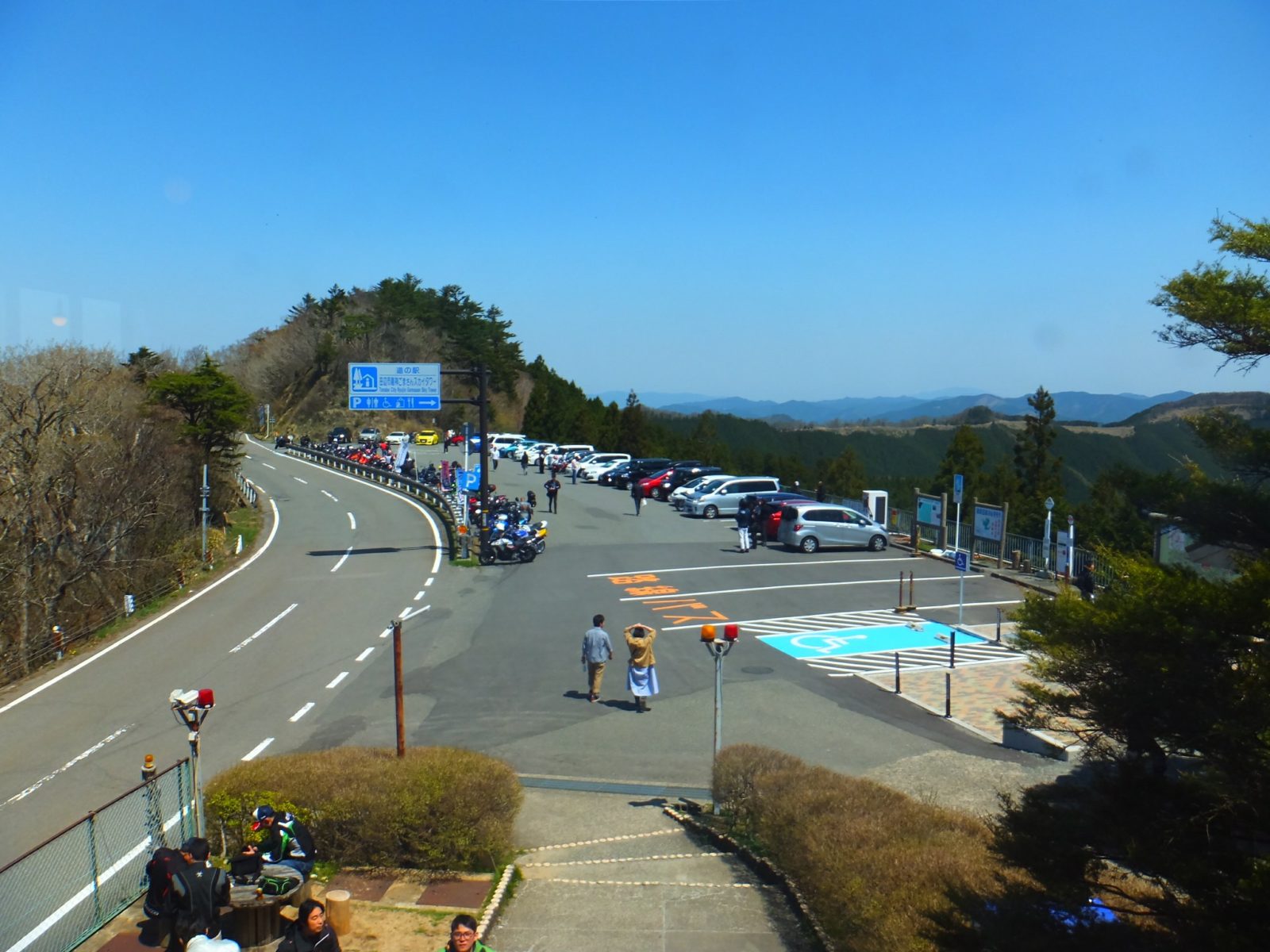 ほぼ中間地点にあるこの道の駅は、トイレやお店もあり、なおかつ眺めも抜群なため休憩にぴったり。ライダーの方がたくさん集まっていました。
