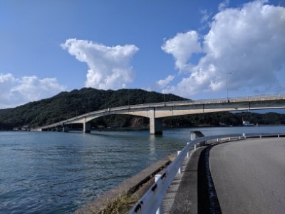 海沿いを走り、中瀬戸橋を渡ると牧島という島へ渡ることができます。