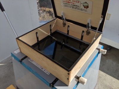 温室効果で灼熱の展示室。中には木箱があるのですが、開けてみると空っぽ。