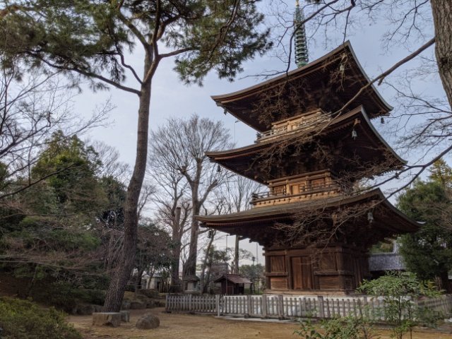 豪徳寺のネコスポットは招福殿だけではありません。それはこちら2006年に落慶した木造の三重塔。高さ22.5mの立派な建築です。