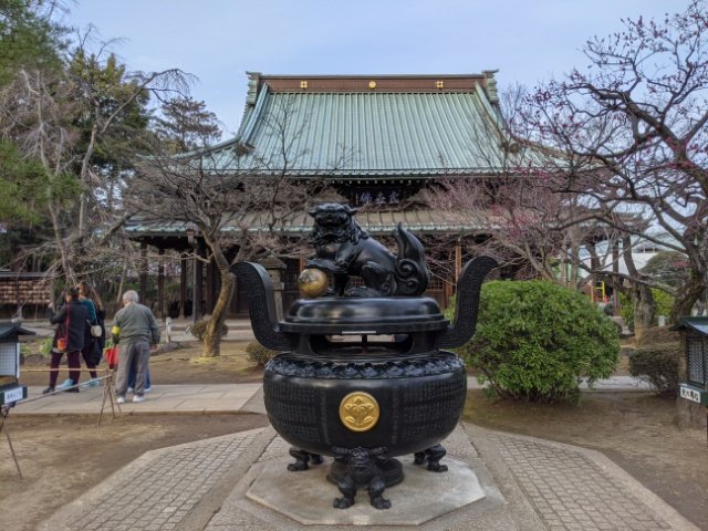 香炉と、その先にある仏殿。仏殿内部は非公開ですが、ガラス張りの戸から覗くことができます。