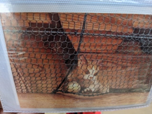 2階部分に金のマリを手にしたかわいらしいネコが。凄くリアルな子猫で、まるで生きているようです。