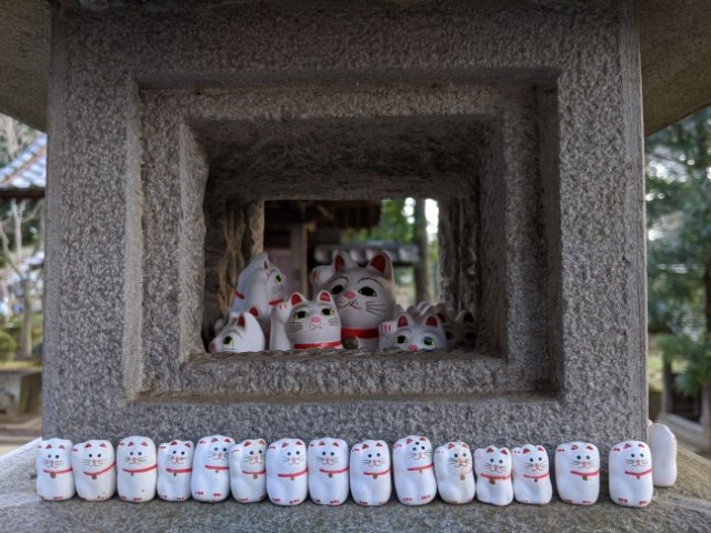 この三重塔、よく見ると十二支とともに彫られた招き猫の姿が隠されています。
