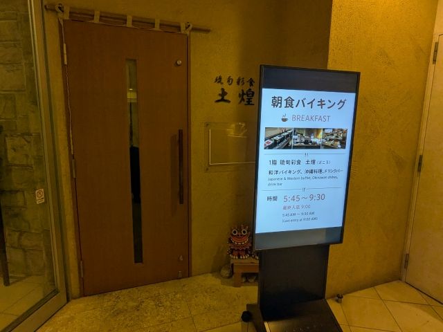 朝食処はこちら。なんと5:45〜9:30オープンというありがたすぎる時間帯。今回は時間がかつかつだったので利用できずでしたが、沖縄っぽいメニューもあるそうです。