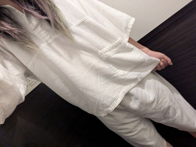 部屋着は浴衣ではなく、はだけないセパレートタイプ!ハーフパンツというのが沖縄っぽいですね。