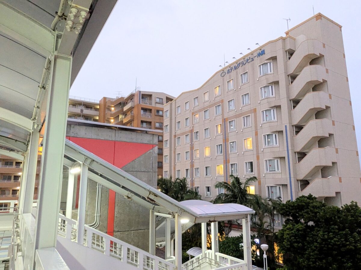 そんな駅の目の前にあるのがホテルグランビュー沖縄。駅から続く階段のほんと目の前にあります