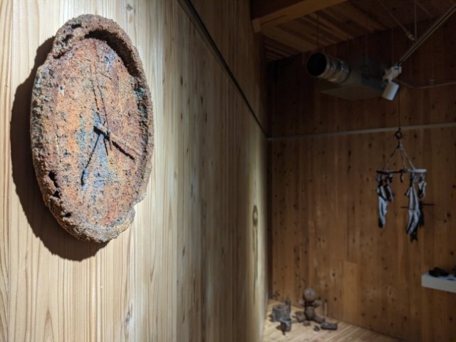 この展示は、火山の噴火によって一瞬にして消滅した古代都市ポンペイなど、突如消失した文化がモデルとなっているそう。7時17分で止まった時計、この時にいったい何があったのでしょうか。「大山が噴火してしまったのかな?」などなど、いろいろな未来を想像してみるのも楽しい。