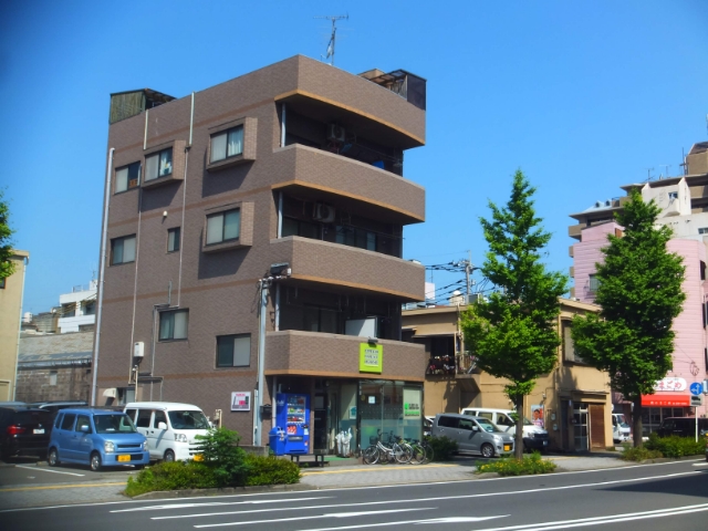 こちらのアパートがまるまるゲストハウスとなっております。道路の向かいには吉野家やセブンがあります。夜中急にお腹すいても安心ですね。
