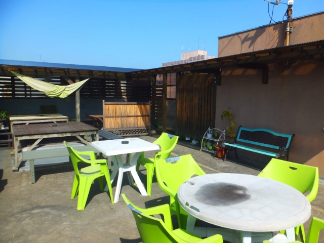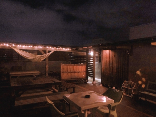 屋上はエスニックな雰囲気のあるテラスとなってます。夜はなんだかおしゃれな雰囲気。ぼんやりと過ごしていたくなります。
