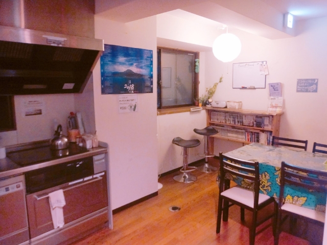 キッチン付きの共有スペースもあります。冷蔵庫やIHコンロなど、ひと通り設備は揃っている印象です。