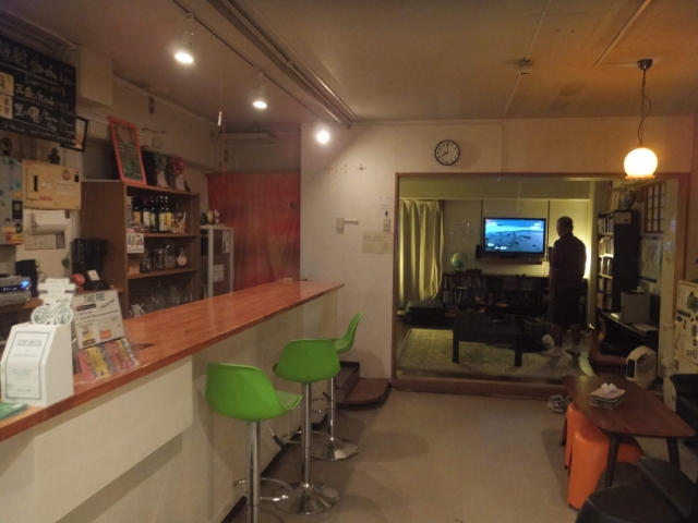 1階が受付&リビング&バーカウンター。スタッフさんはとてもさらっとした感じです。