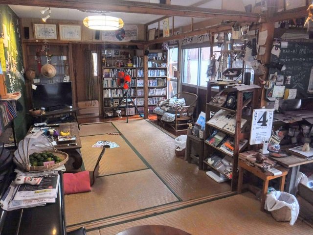 共有スペースにはテレビや冷蔵庫などの家電設備が完備。マンガや旅行本、そしてよくわからないけど面白そうなモノもたくさん置いてあります。お茶やコーヒー、そしてWi-Fiはフリー。カップヌードルなども販売しているので、ゆんたくが盛り上がって夕飯を食べそびれてもも大丈夫!