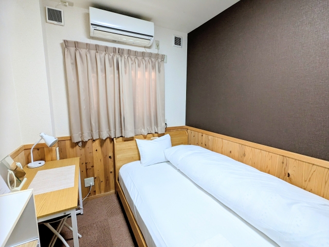 今回利用したのはシングルルーム。全室エアコン、WiFi完備です。