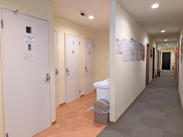 トイレと洗面台は数が多いので、満室時でも安心です。洗濯機は1回200円、乾燥機は100円で、それぞれ一台ずつ設置されていました。