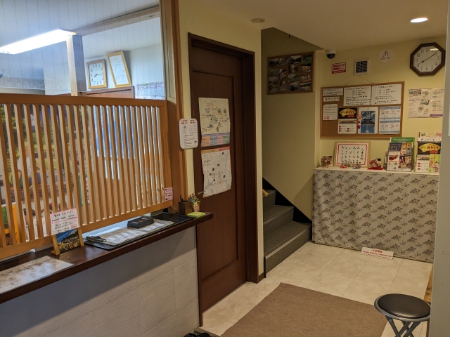 入口を進むと、なんだか郵便局みたいなカウンターがあります。受付のあとは、入口オートロックなど各種説明があります。