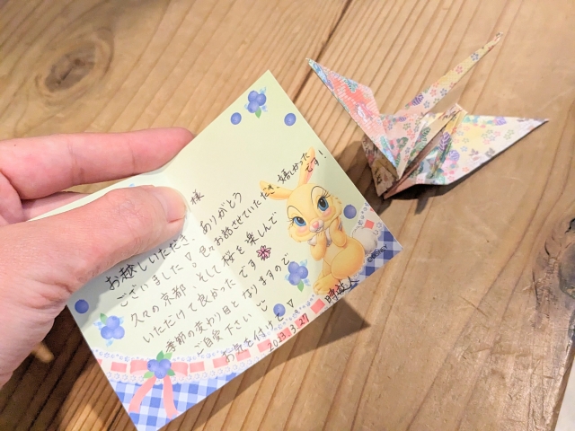 最終日、荷物を預かってもらい夕方くらいに取りに戻ると、受付は無人。最後にご挨拶したかったなと思っていたところ、荷物にこんなお手紙を忍ばせてくれていました・・・。