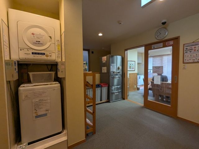洗濯機と乾燥機もあるので、長期滞在も可能。洗濯機は200円、乾燥機は100円にて利用可能です。