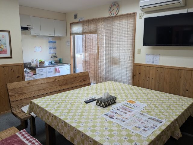 こちらが共有スペースのリビングルーム。キッチンには冷蔵庫、電子レンジ、オーブン、炊飯器、IHヒーター、ティファールのポットがそろっています。
