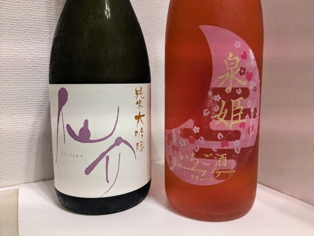 最終的に、「仙介 純米大吟醸」と「泉姫 いちご酒」を買ってしまいました!どちらも灘の泉酒造の製品。空けるのが楽しみです。