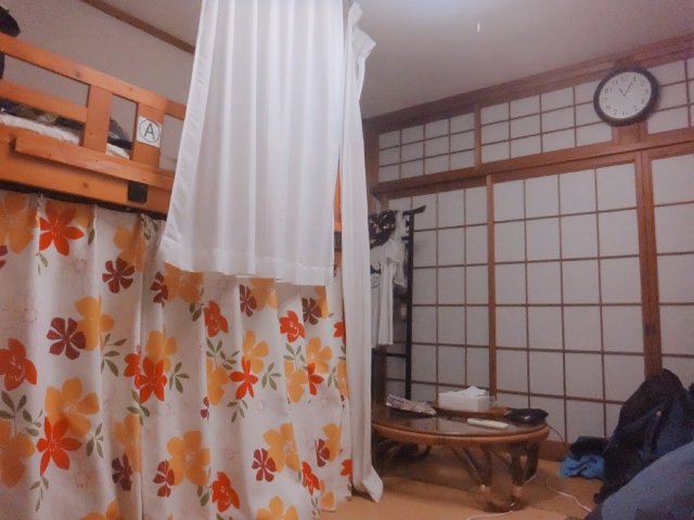 こちらがドミトリー。畳敷きの和室に2段ベッドが置いてあるスタンダードなタイプ。カーテン付きなので、それなりにプライベート空間が保てます。障子やちゃぶ台が和風な雰囲気で、インバウンドは喜びそうです。