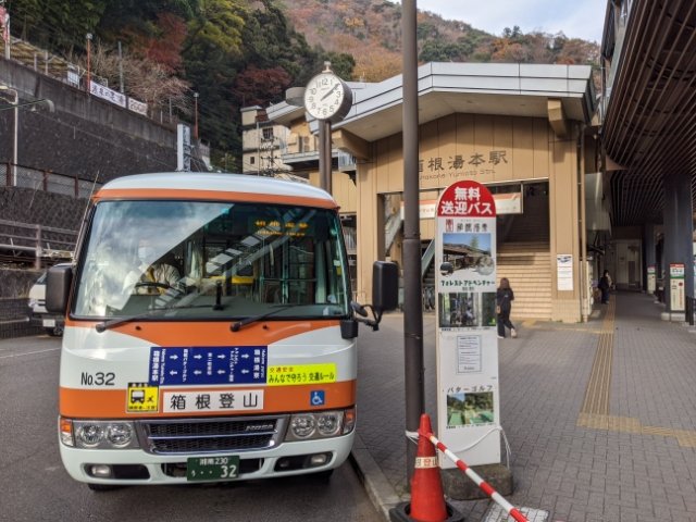 最寄り駅は箱根湯本から箱根登山鉄道で1駅の塔ノ沢駅ですが、箱根湯本駅からシャトルバスが10~15分間隔で運行しています。コレに乗ればわずか3分で到着です。
