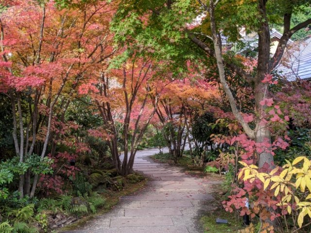 風情ある門構え。色鮮やかな紅葉がとってもキレイです。