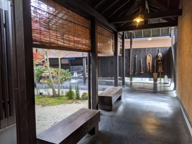 里山テイストの館内
