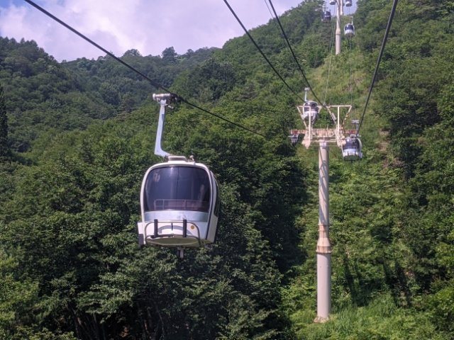 6人乗りのゴンドラで、高低差625mを約8分で上っていきます。なんだかロープウェイを貸切しているような気持ちでわくわくしてきました。