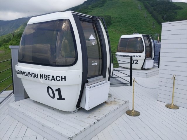 マウンテンビーチは山の中腹にあるため、八方ゴンドラリフト「アダム」に乗っていきます。料金は往復2,000円。スキー場のゴンドラなので、発車時刻などは無く随時運行しています。
