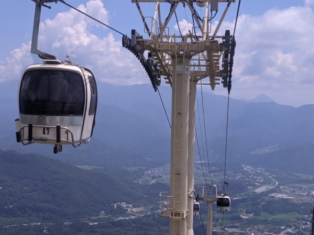 さて、満足したのでゴンドラに乗って山麓へと戻ります。下りのゴンドラは、まるで空へ飛び立つような気分でとっても爽快!