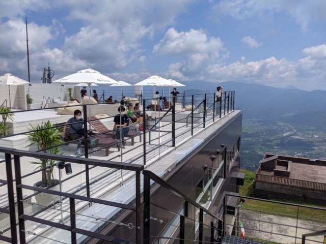 マウンテンビーチはゴンドラ終点・兎平駅の屋上にあります。